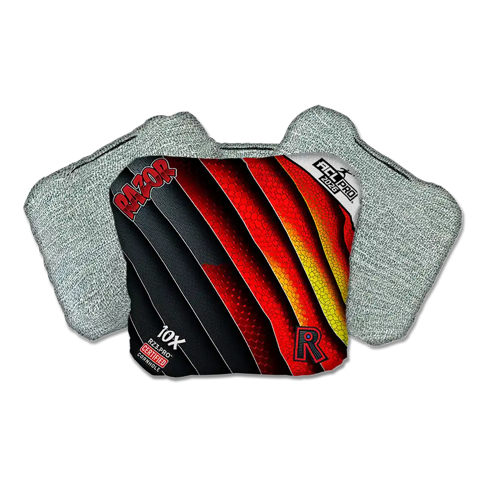 Razor Cornhole Bags feature exclusive RZ3.PRO™ Resin - engineered for pro-level precision, consistent feel, and elite control in all conditions. RZ3.PRO™ gives players the advantage over the competition. Razor delivers a true edge on every throw.