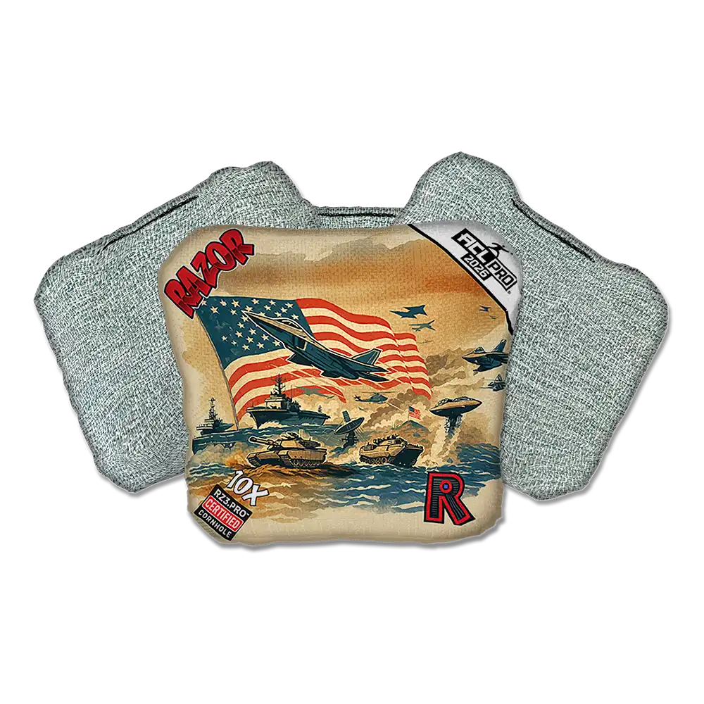 Razor Cornhole Bags feature exclusive RZ3.PRO™ Resin - engineered for pro-level precision, consistent feel, and elite control in all conditions. RZ3.PRO™ gives players the advantage over the competition. Razor delivers a true edge on every throw.
